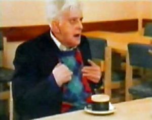 “There was resistance to him leaving because he was too useful, he’d got a lot of friends in there, he’d got friends who just visited the hospital, who he knew, he was very observant, I know people now who used to go there voluntarily years ago, who saw Geoffrey and got to know him there, he was a definite personality, got a lot about him and that of course was the reason he went in, ‘cos he was a sparky guy and he used to fight like hell, he was a difficult guy with this big personality, he used to react to you in a marvellous way and people just loved him, so getting him out was a kind of mission and it needed to be done and you had to nudge away and nudge away, but eventually he broke down and came out, we got him into a hostel.”
